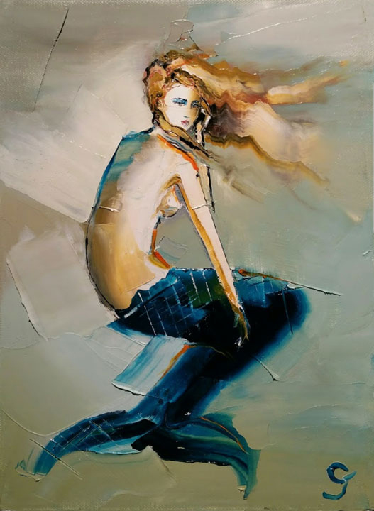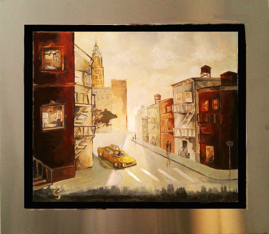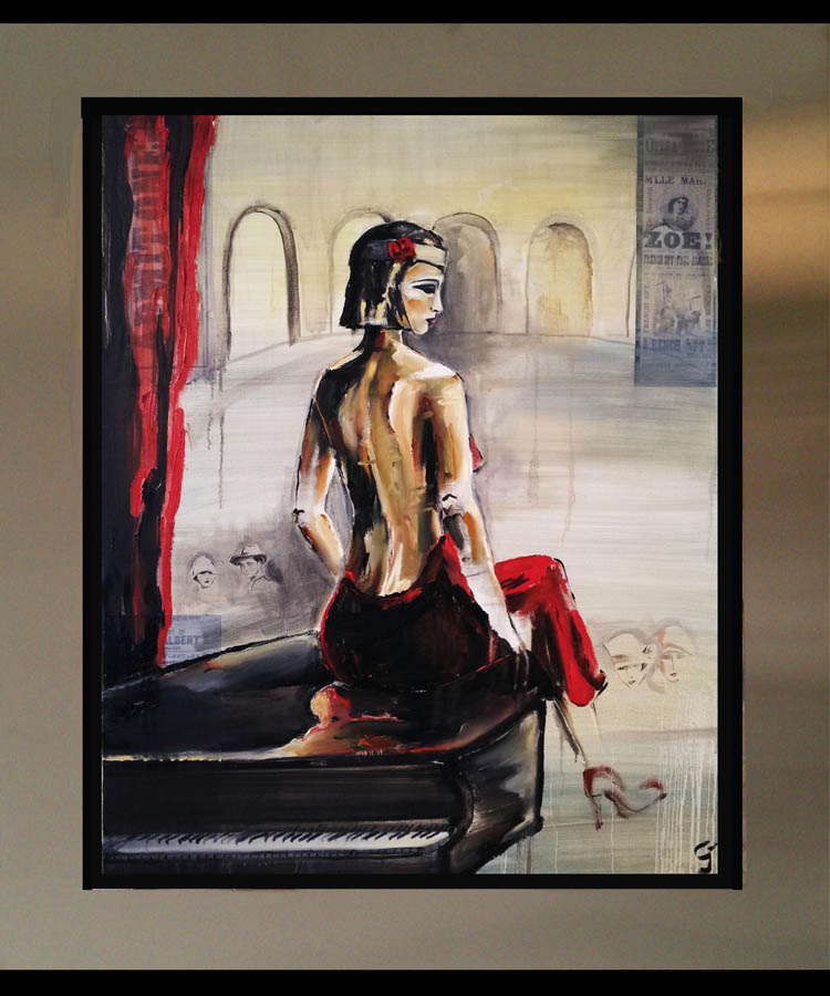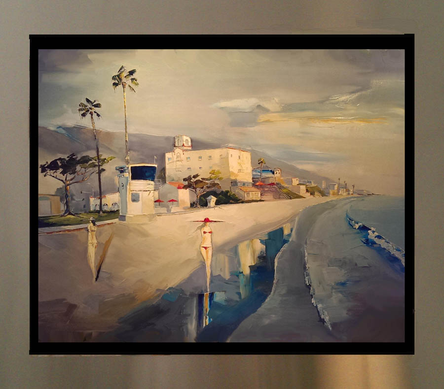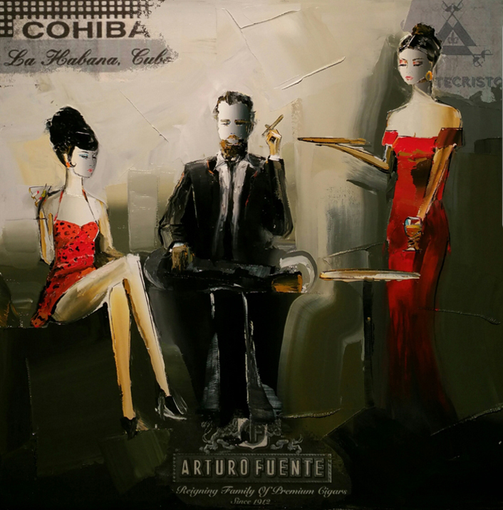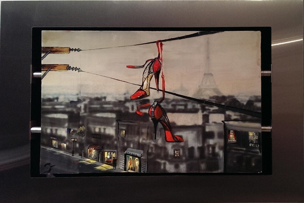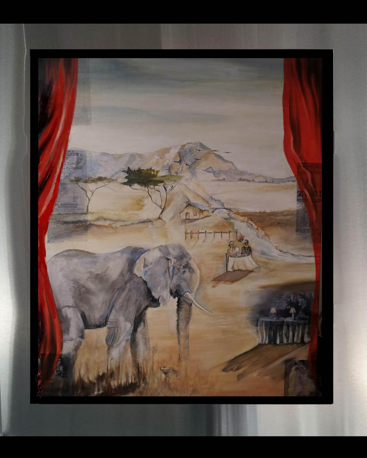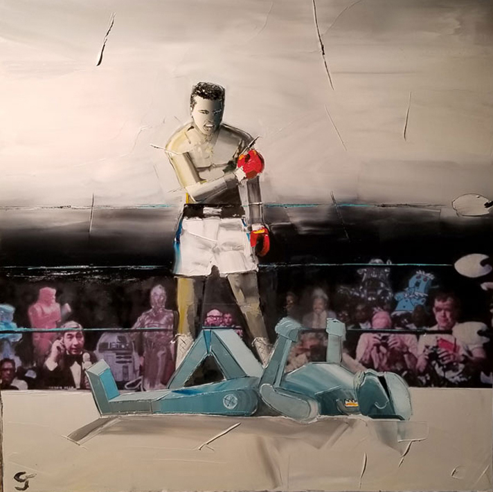 the subject matter over in oil. Each piece is floated in his custom-designed stainless steel frame.