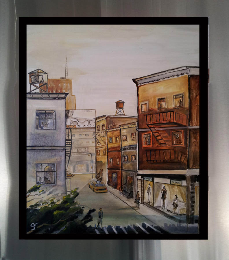His work doesn’t focus on any one particular subject. He gathers inspiration from diverse experiences, places and surroundings. Chuck’s signature technique connects all of his pieces together.